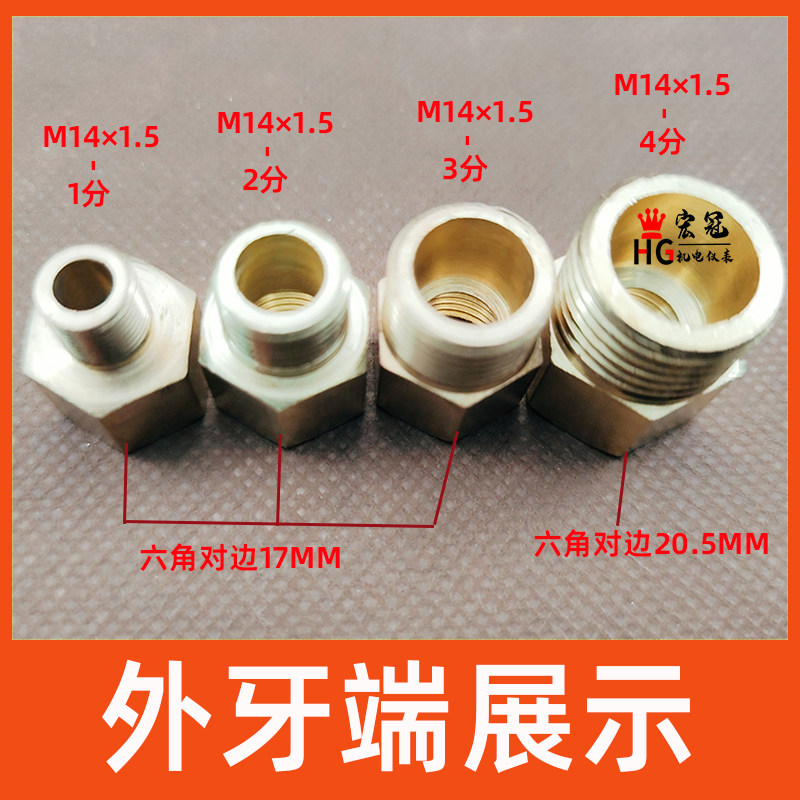 Copper pressure gauge conversion joint variable joint internal teeth M14*1 5 turn external teeth 1 minute G1 8 metric British meter head transfer