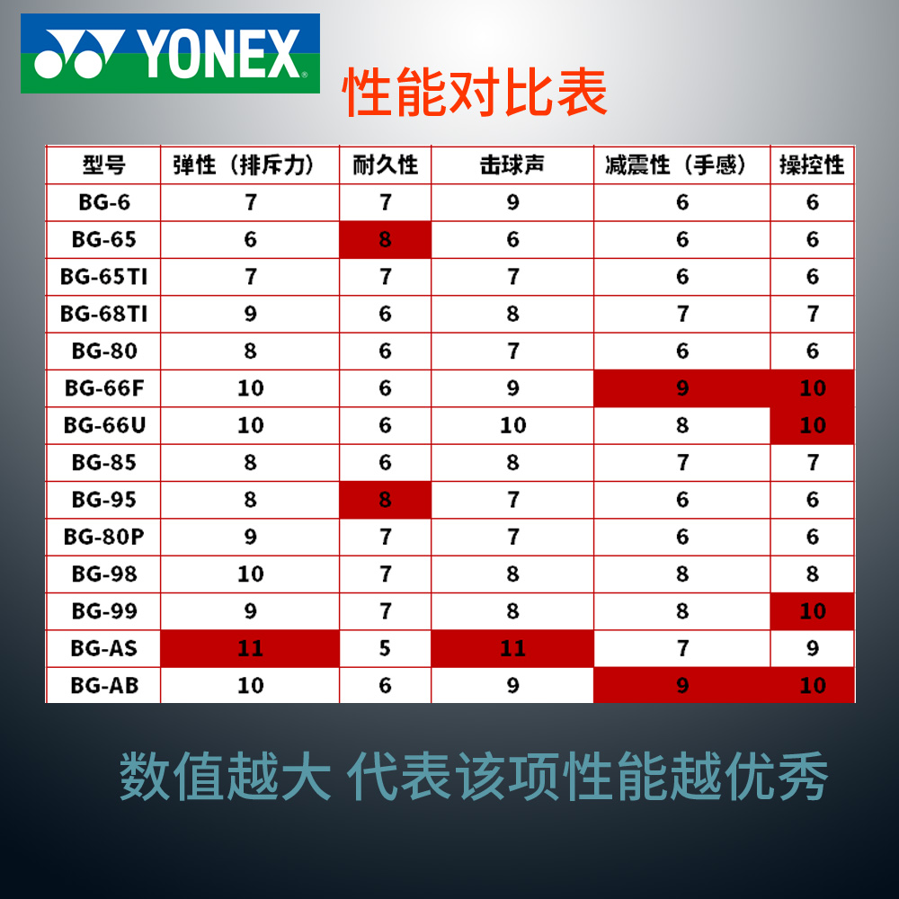 BG65 Balance Resistant Purple Navy Blue Orange White Beige Yellow-Green Black BG6 Entry Level White Violet Yellow Green Black Blue Blue Red Orange BG65TI Balance Resistant Hit Crisp White Blue Black Pink Red BGXB63 High Bouncing Crisp Comfortable Feel Yellow Green Black White BG80 Powerful Kill High Speed Rebound Yellow Green White Black Navy Bright Pink BG66U Violent Smash Precision Control White Yellow Green Black Bright Pink Navy Blue NBG98 Quick Rebound Comfort Feel Light Gold Aquamarine Beige Yellow (Recommended version) NBG95 Durable High-speed rebound Gold Dark Grey Beige Yellow-Green Red BG80P Strong Smash High Bounce Resistant Orange White NBG99 Precision Control Attack and Defense White BGAS Powerful Attack White Purple Rose Red BGAB Daughter-Mother Double Line Attack and Defense White Red White White Blue BGABBT Ball Holding Control Feel Solid Gray Yellow Red Black BGSKY Front Control Powerful Kill White