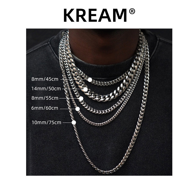 KREAM silver hip hop Cuban chain necklace Europe and the United States trend wild cuban high quality titanium steel men and women chain
