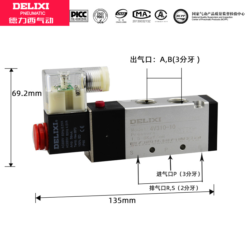 Delixi solenoid valve air valve 220v two-position five-way 24v 12v solenoid directional valve 4v310-10 solenoid valve