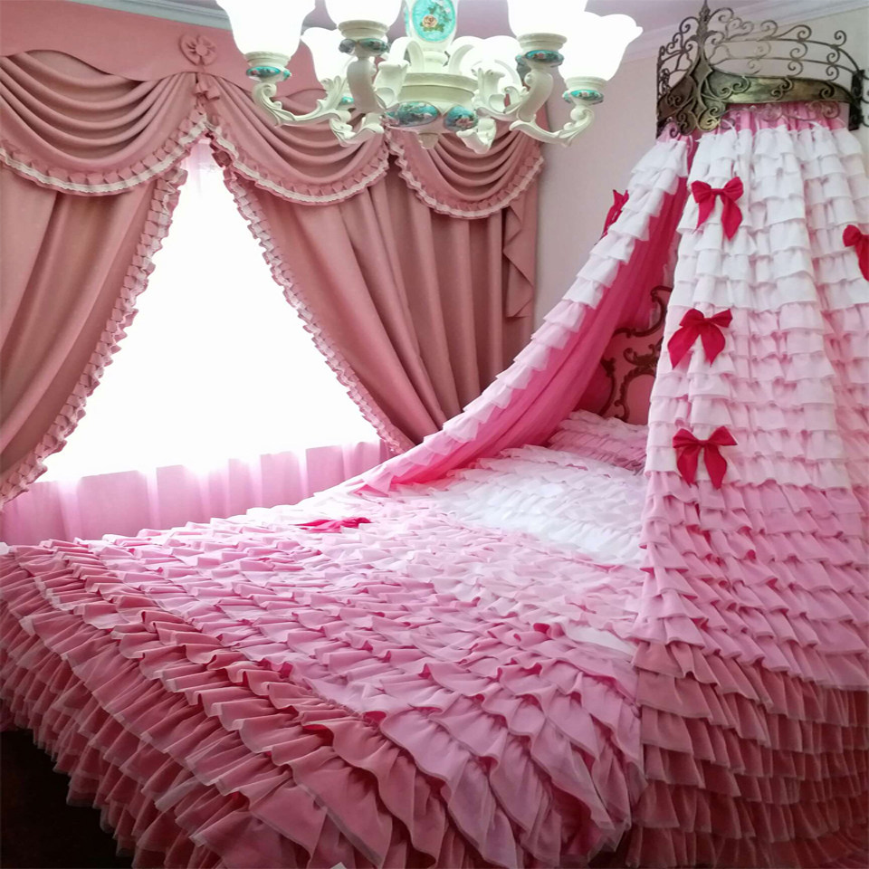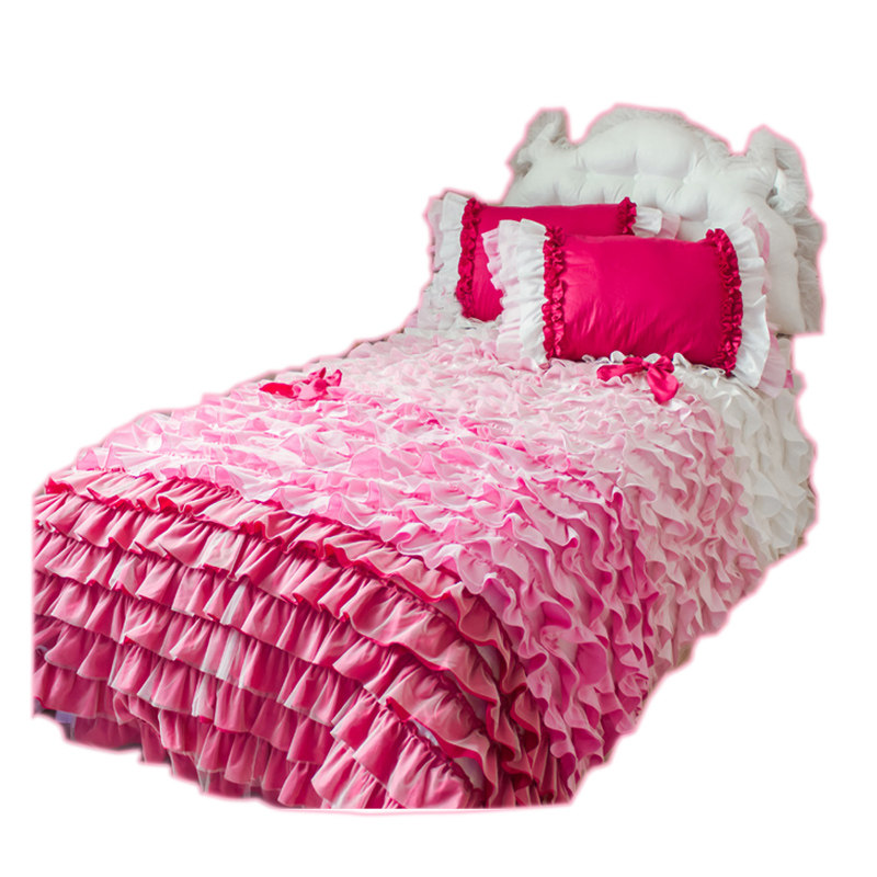 Princess four-piece set Rainbow White dive pink rose Red Ruffle cake layer Bedding bed cover