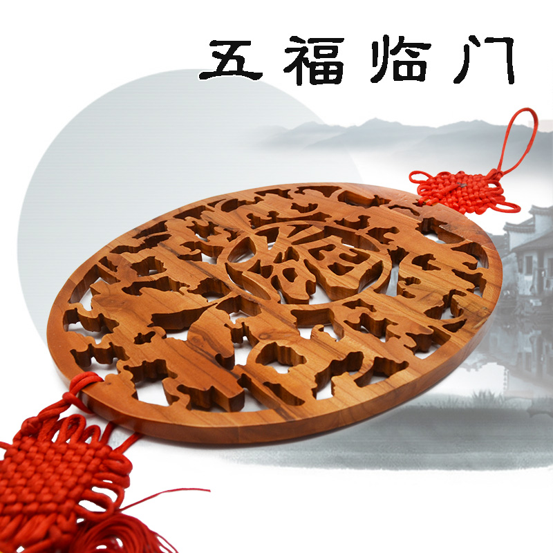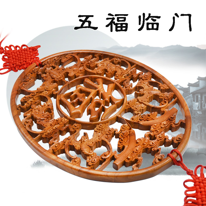 Peach wood king peach wood pendant Wufu Linmen home carving Fuzi Nafu Ruyi Wufu to the porch Fengshui decoration