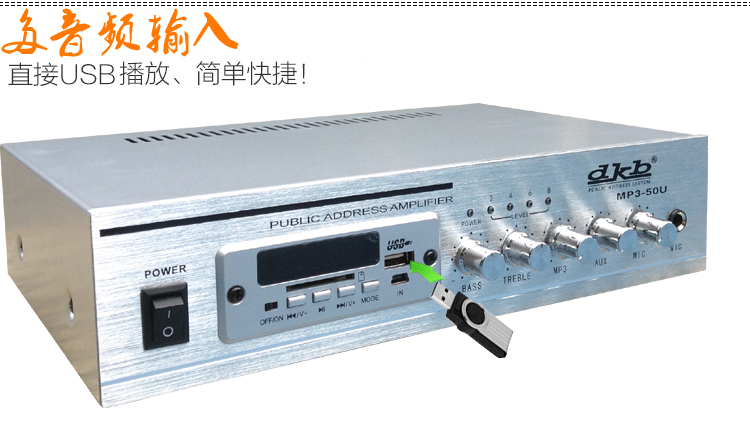 Bluetooth 50W pressurized amplifier U disk SD card FM radio Suction wall hanging horn background broadcast amplifier