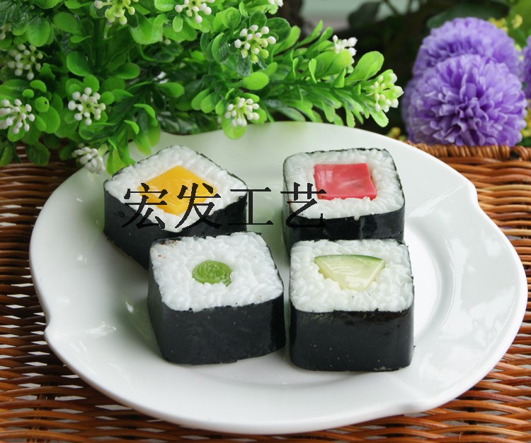 Emulated sushi food model salmon sashimi eel Japanese cuisine emulation hand holding rolls sushi meals