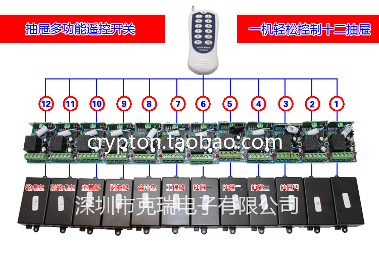 Drawer multi-function remote control switch one-to-many remote control suitable for safe gold cabinet office