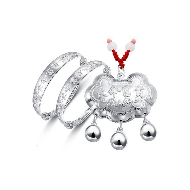 Pure silver baby package pure silver long life rich silver lock children full moon silver kit three pieces