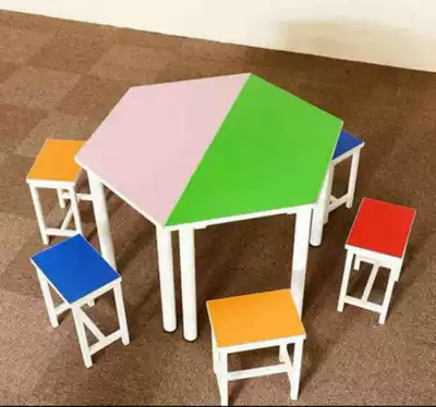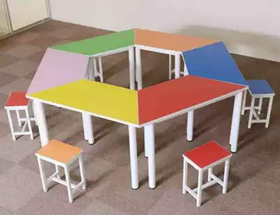 Hexagonal computer desk for primary and secondary school students training class trapezoidal desk Art table color combination maker classroom desk
