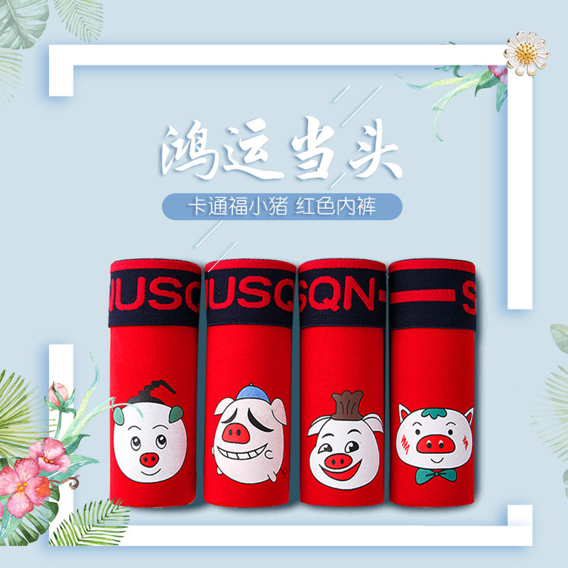 Noble figure red life year men's underwear breathable U convex sexy four-angle shorts married men's flat pants
