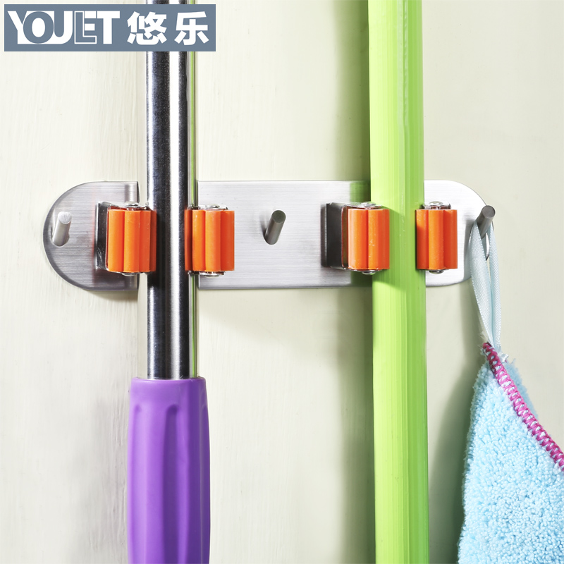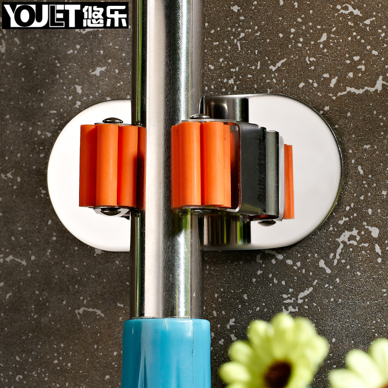 German YOULET304 stainless steel mop rack wall mount mop clip broom clip paste installation without drilling