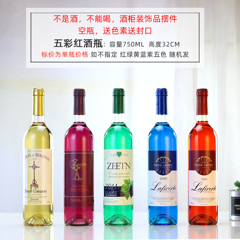 Special transparent decorative wine bottle props wine bottle wine cabinet decoration simulation red wine foreign wine bottle collection colorful wine bottle