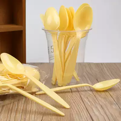 Disposable plastic spoon DS1DS2 ice cream spoon small yellow spoon rhubarb long handle spoon 1000 boxes transparent