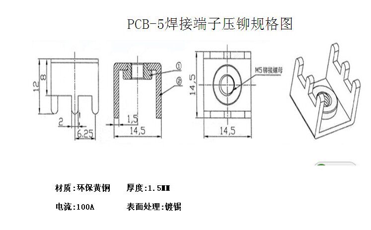 PCB-5M5M6 pressure riveting welding terminal PC holder sub-terminal nut High current hardware copper bench