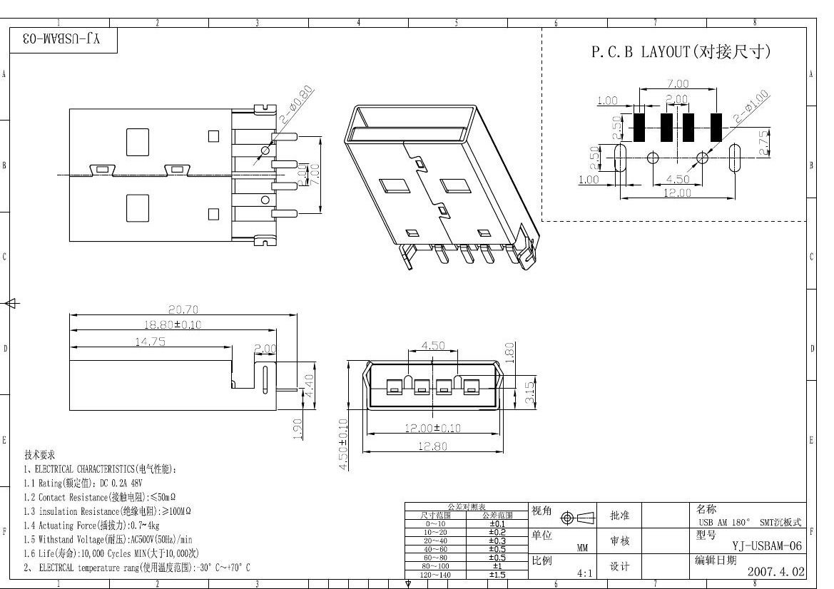 USB AM 180 degree SMT sinking type USB A male head plug straight needle patch plug-in data port