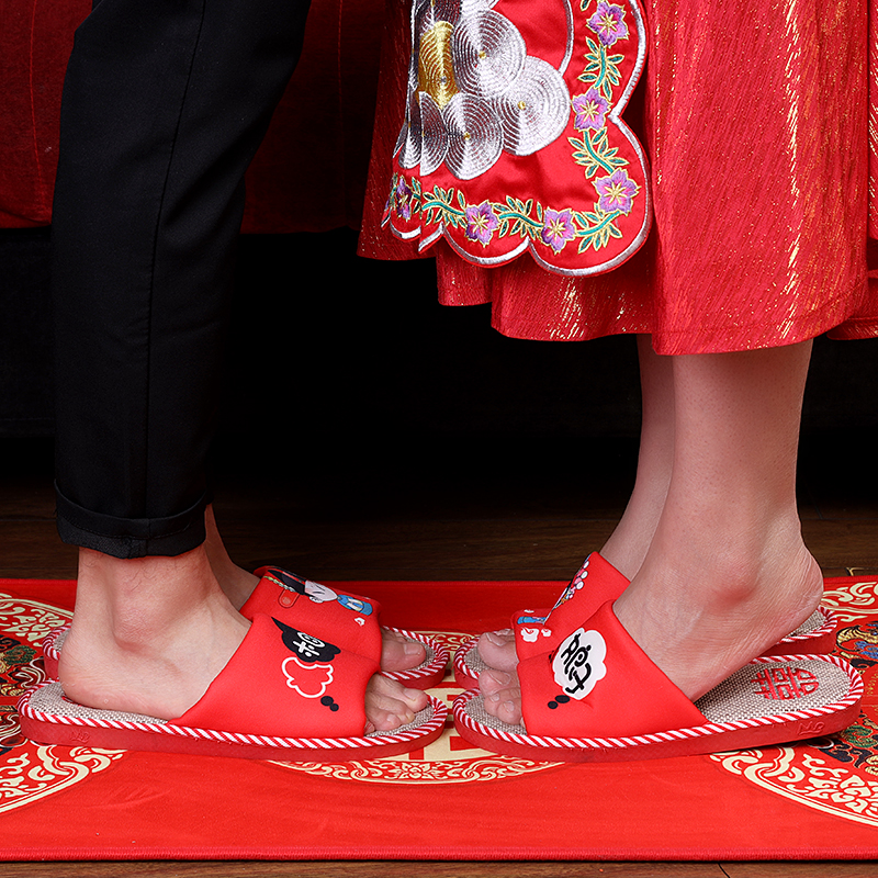 Wedding Supplies Slippers Festive big red couple of summer wedding couple bride groom newlywed shoes indoor men and women