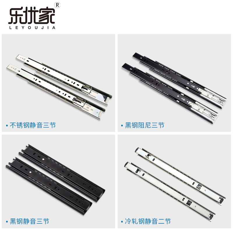 Drawer track Three-section rail Industrial heavy-duty rail Keyboard tray Home whole cabinet silent slide damping buffer slide