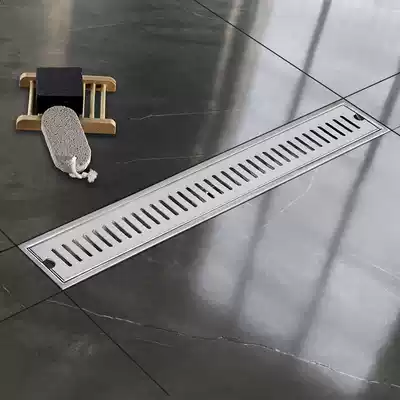Extended powder room large displacement rectangular floor drain filtration Stainless steel strip side drainage shower deodorant and anti-blocking