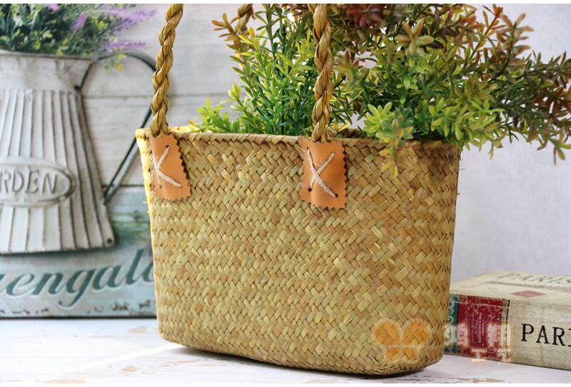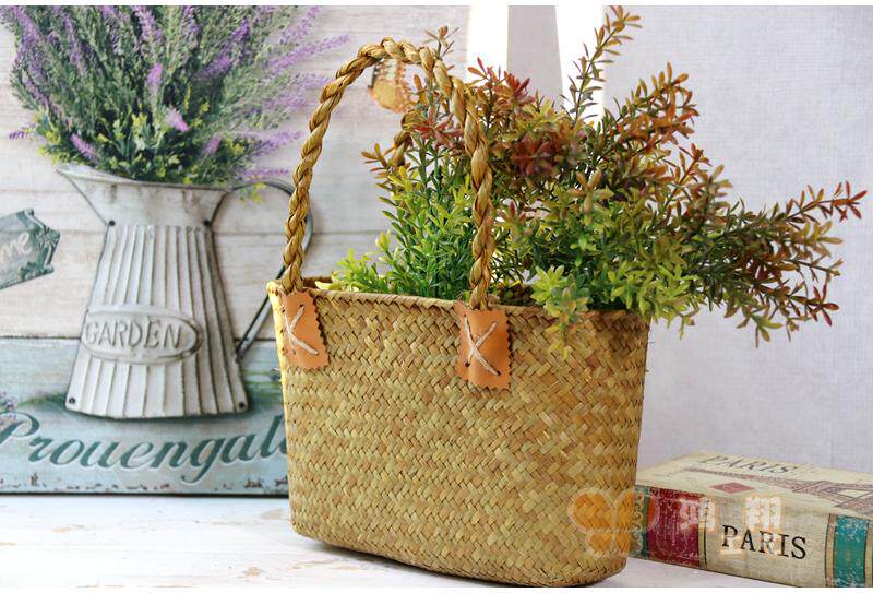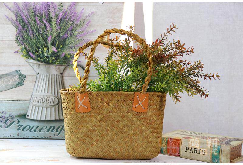 Seagrass tote bag handbag Chinese modern seagrass woven flower basket Hand flower basket tote bag Seagrass handbag