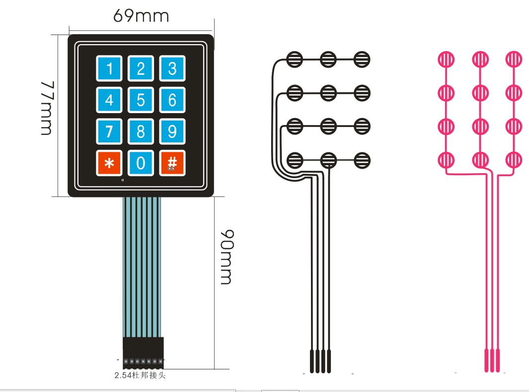 3 * 4 matrix keyboard thin film switch single wafer extension keyboard keyboard control panel 3x4 light touch