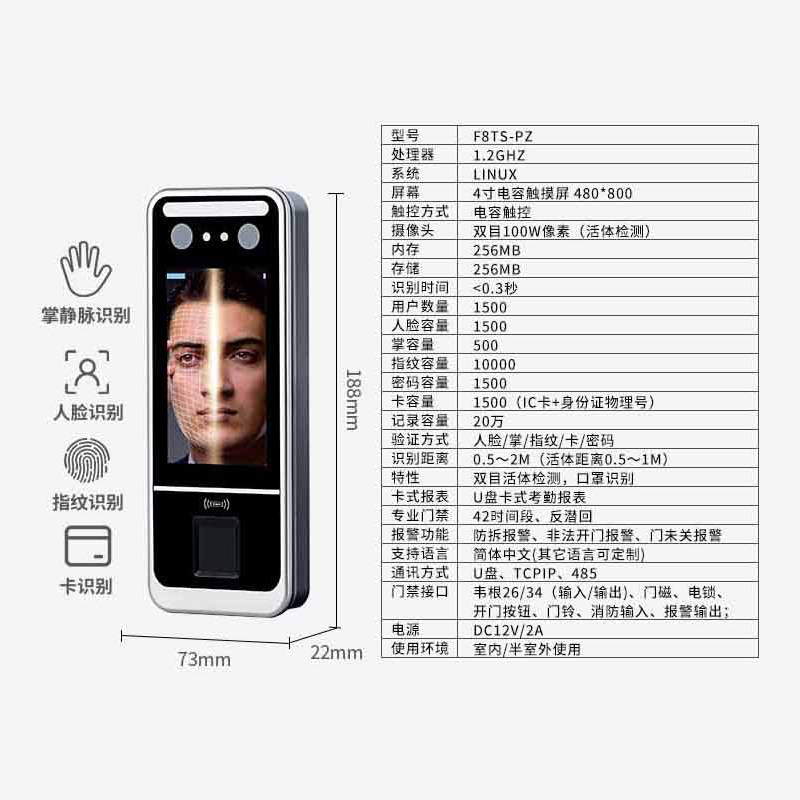 Foshan face recognition access control system fingerprint attendance machine palm vein electronic lock brush IC second generation card mobile phone NFC