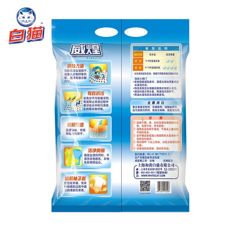 1 2kg White Cat Weihuang Phosphate-free Washing Powder Wholesale Non-Free Promotion Home Pack Home Affordable Bags
