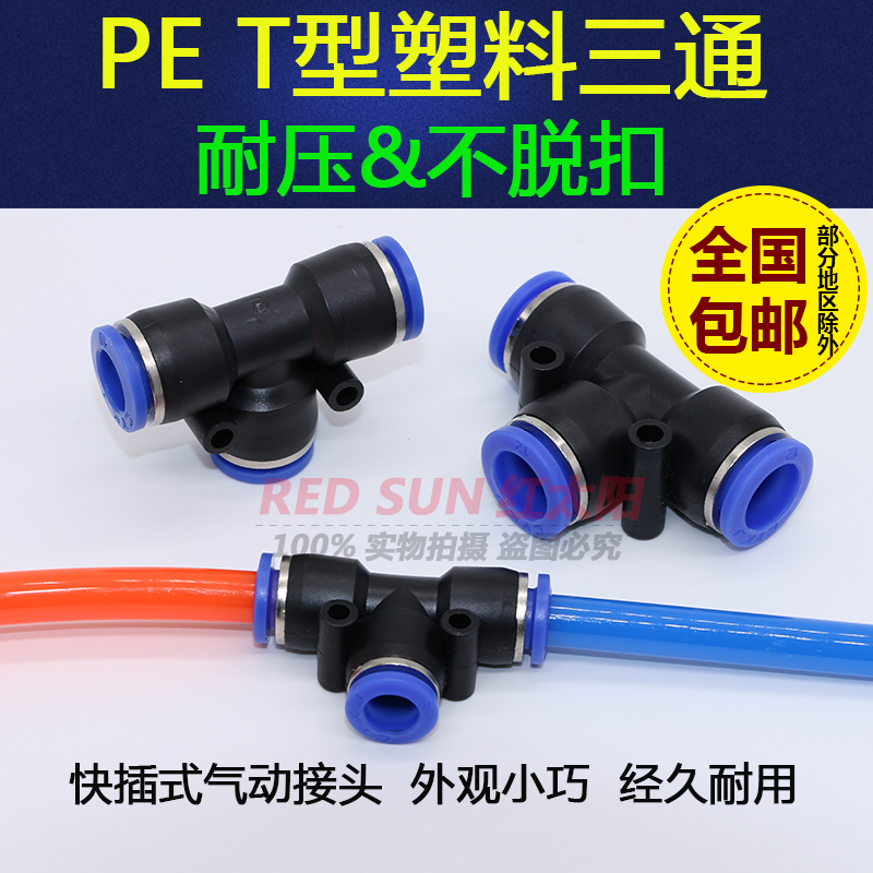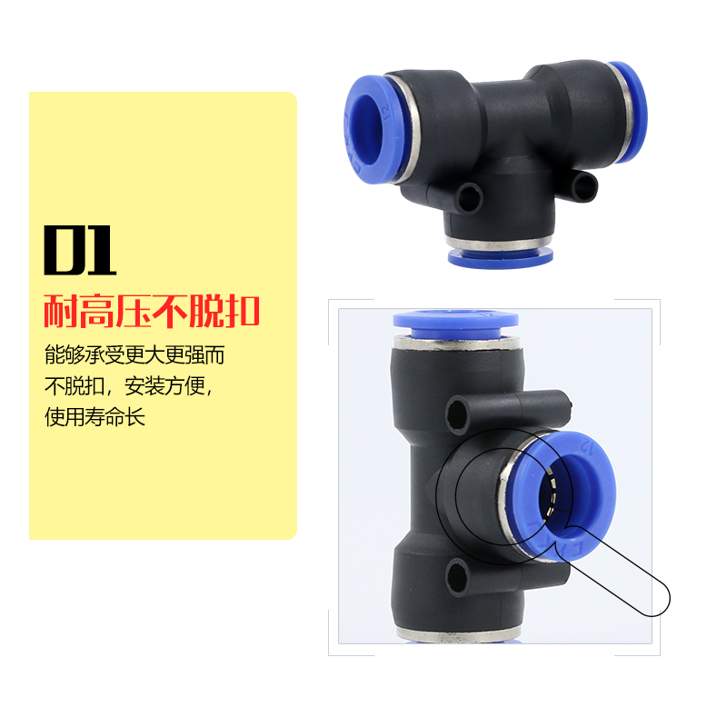 Windpipe quick coupling PE6 Quick-insert 8 Plastic 10 Pneumatic fitting T-type three-way fork conversion 12-16mm variable diameter