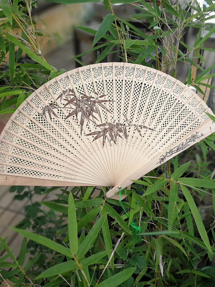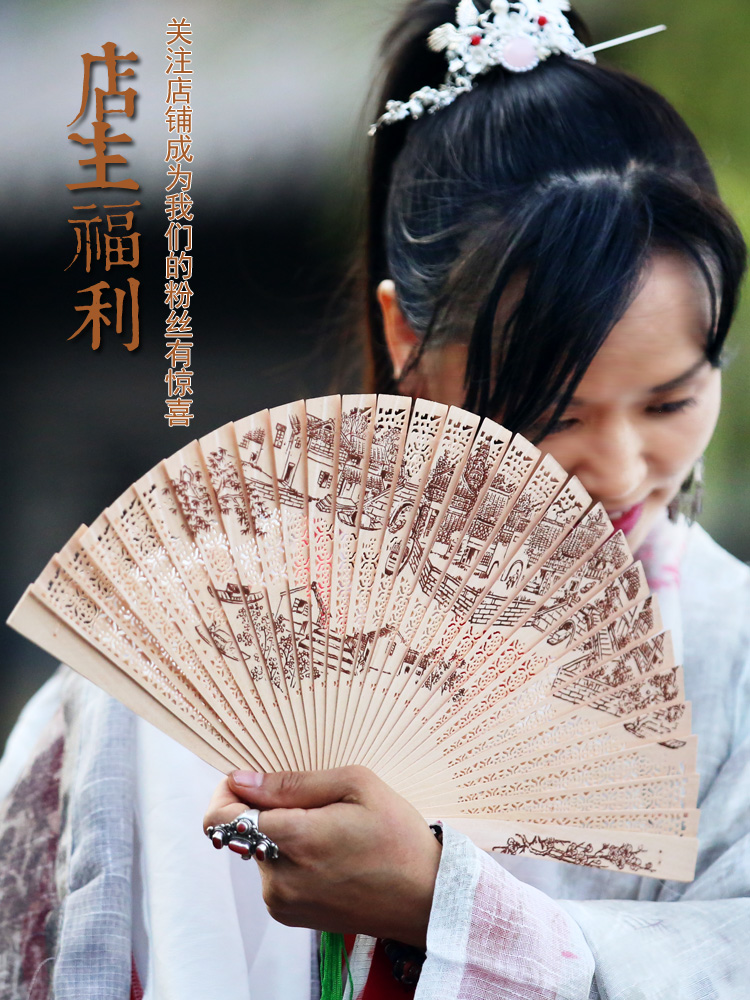 Shanyue brand upgrade gives back to fans one dollar wooden lady sandalwood fan carved hollow birch