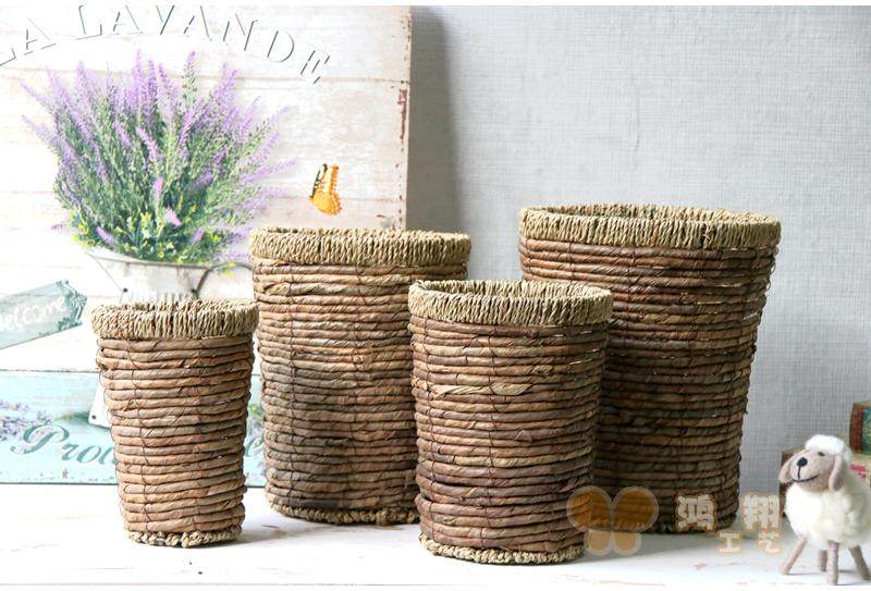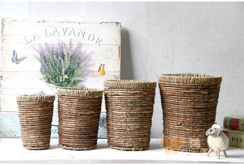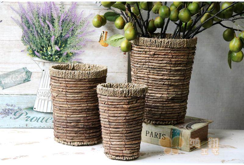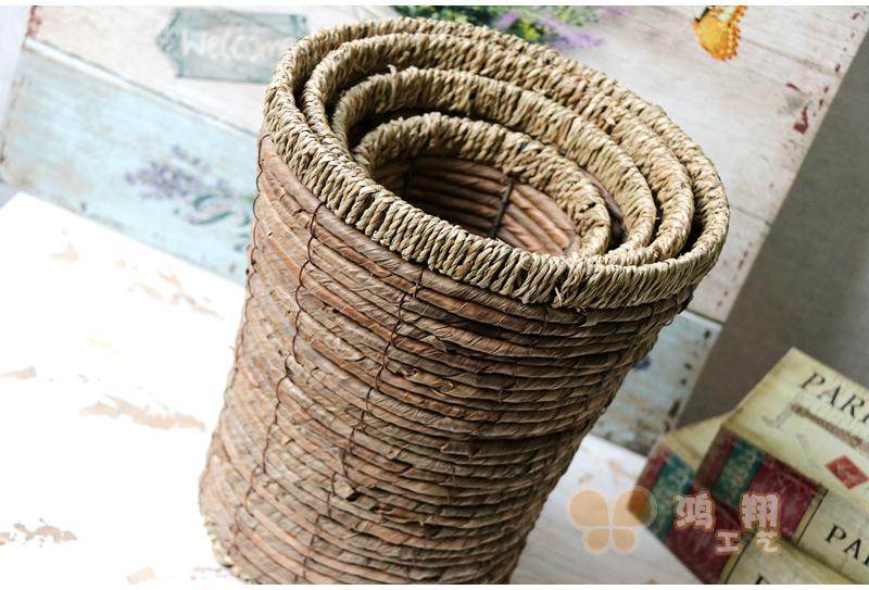 Straw woven dry flower storage flower basket florist flower arrangement storage flower bucket Straw woven flower basket flower tube Vintage storage straw woven tube