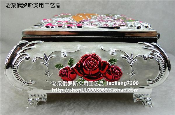 Z2 Russian tin metal first accessories box Makeup Case Big puzzle inlaid with silver edge white love love Seven colorful flowers-Taobao