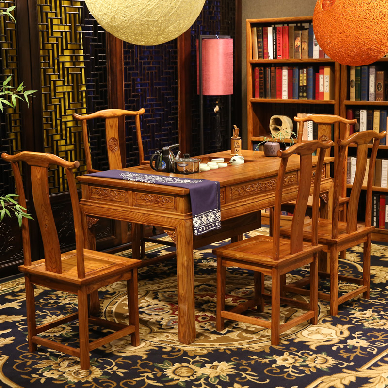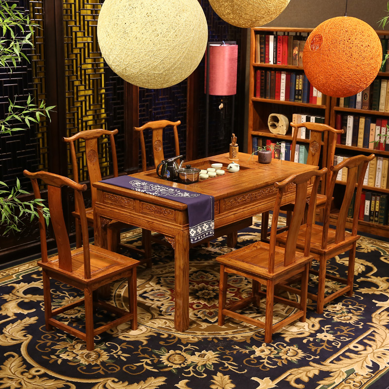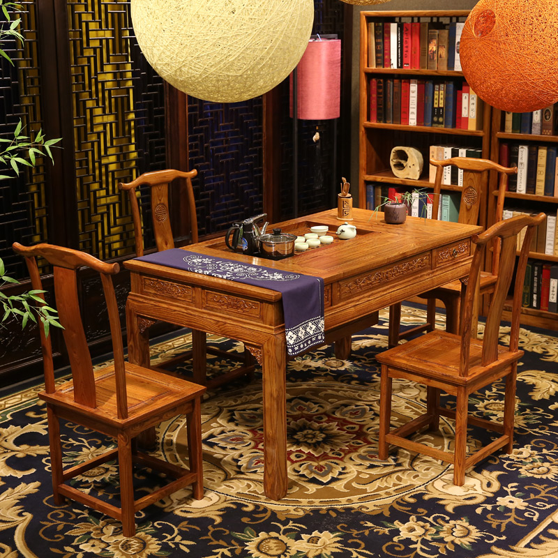 Yijia Tribe Tea Table Solid Wood Tea Table and Chair Combination South Elm Tea Table Classical Tea Sea Kung Fu Tea Table
