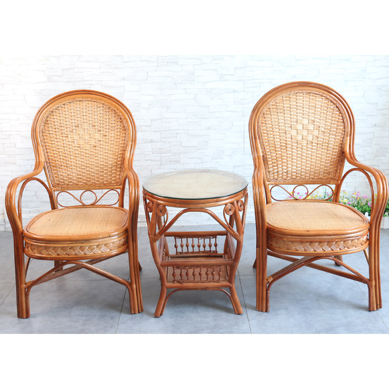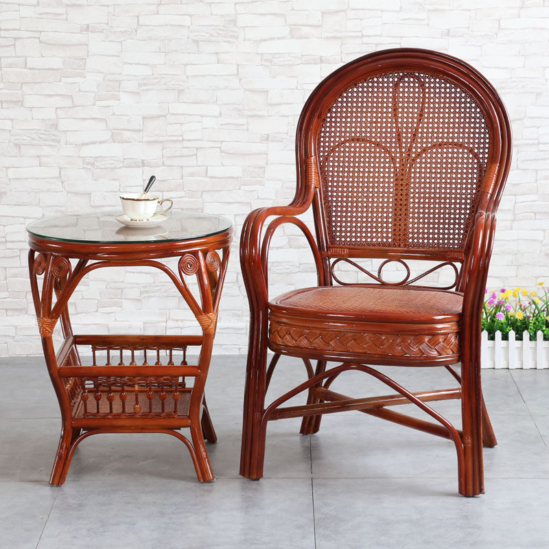 True rattan chair with three sets of tea table combined office chair man high backrest casual chair single teng chair book room stool
