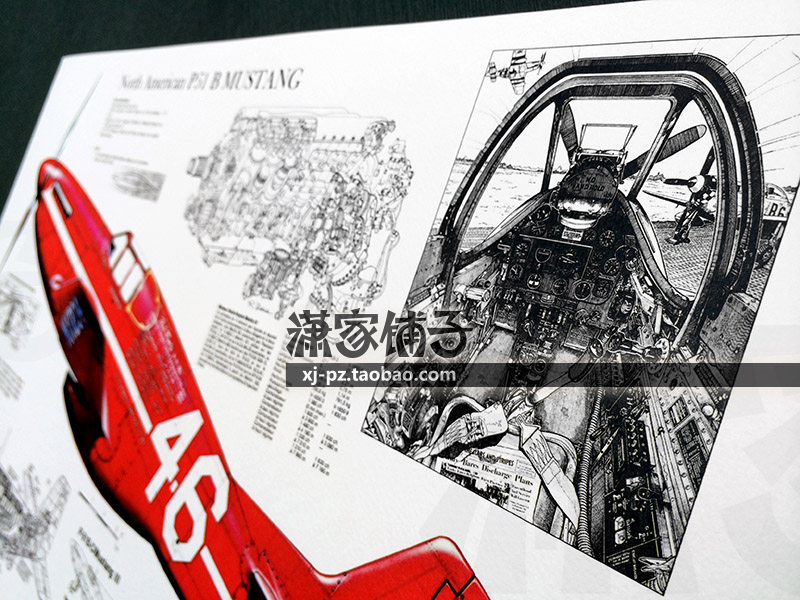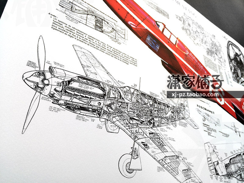 U.S. World War II U.S. P51 Mustang Fighter Aircraft Drawing Blueprint Structure Drawing Poster Decorative Painting
