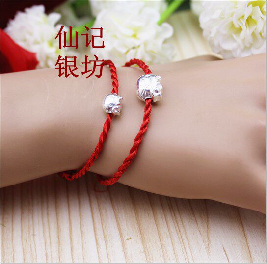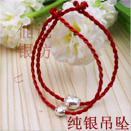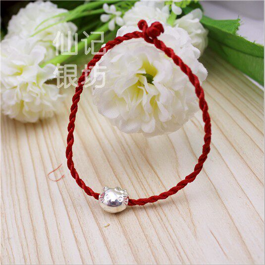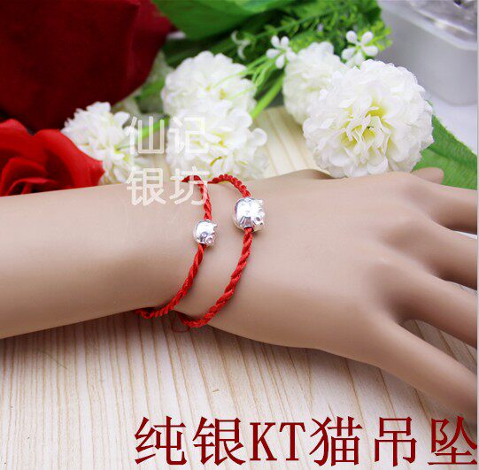 990 Sterling Silver Cat Red String Hands for Men and Women Couples Red String Hands DIY Silver Pendant Loose Beads
