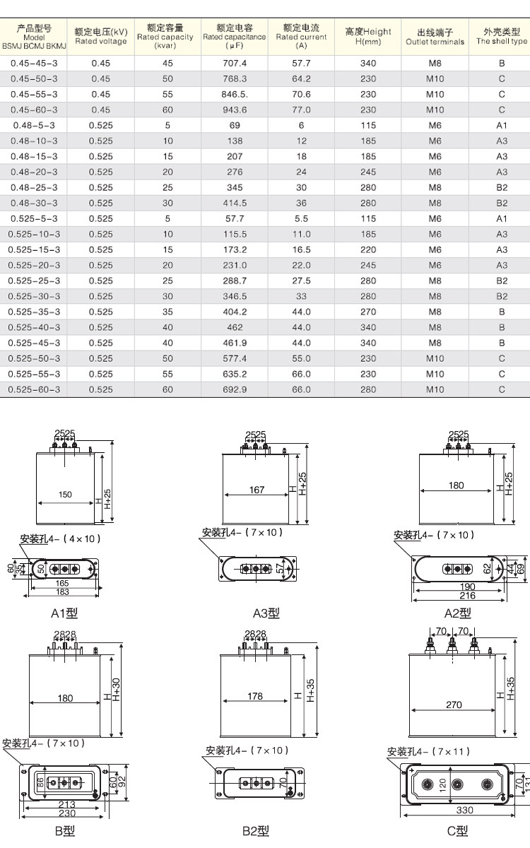 Shanghai Wisecom BSMJ0 4-18-3 self-healing shunt power capacitor 400V 18kvar
