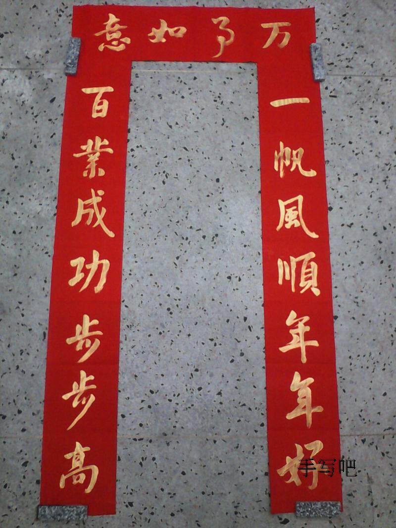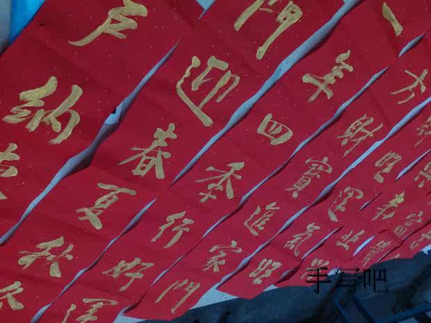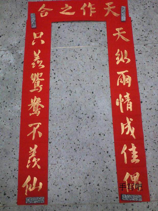 Handwritten Gold Powder to Write a Chinese Calligraphy True To Five Yunshan People, New Wedding Happy New Wedding Happy New Wedding