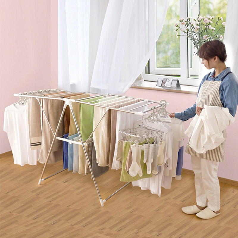 IRISIRIS airfoil clothes rack Floor folding balcony Indoor clothes drying telescopic stainless steel clothes rack