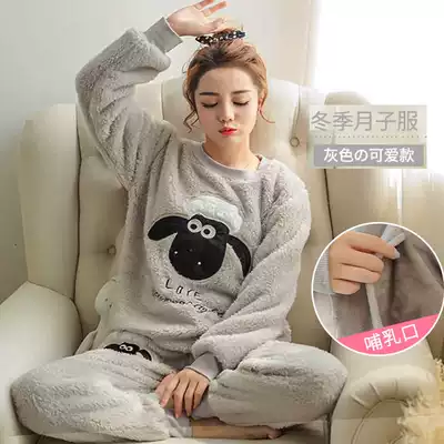 Pregnant women's home confinement clothes Autumn and winter thickened plus velvet postpartum coral velvet March breastfeeding winter breastfeeding pajamas