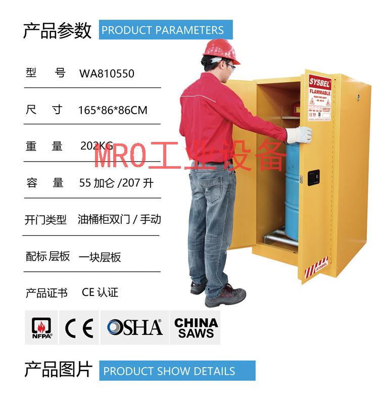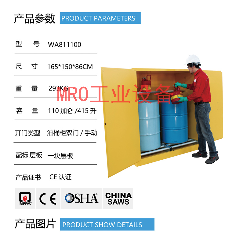 SYSBEL110 55 gallons single double oil barrel fire safety storage cabinet WA810550 811100810115