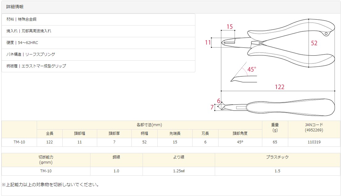 Original imported Japan TTC Kakuda precision oblique mouth pliers Water mouth pliers Oblique mouth pliers 45 degree model shear pliers TM-10