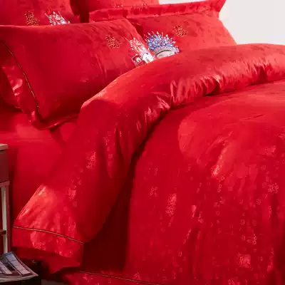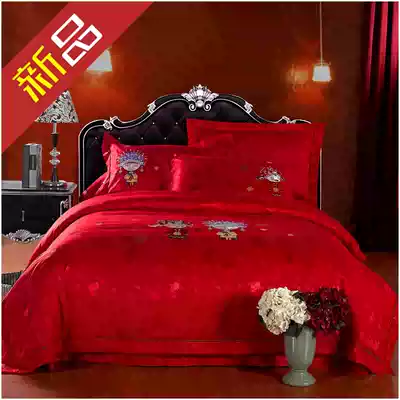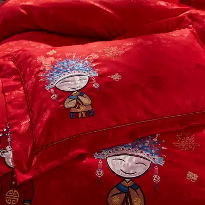 Bride and Bride Embroidered quilt cover Big Red Wedding Bed Set Four Piece Cotton Gongsatin Wedding Room Bedding Set Six Piece Set