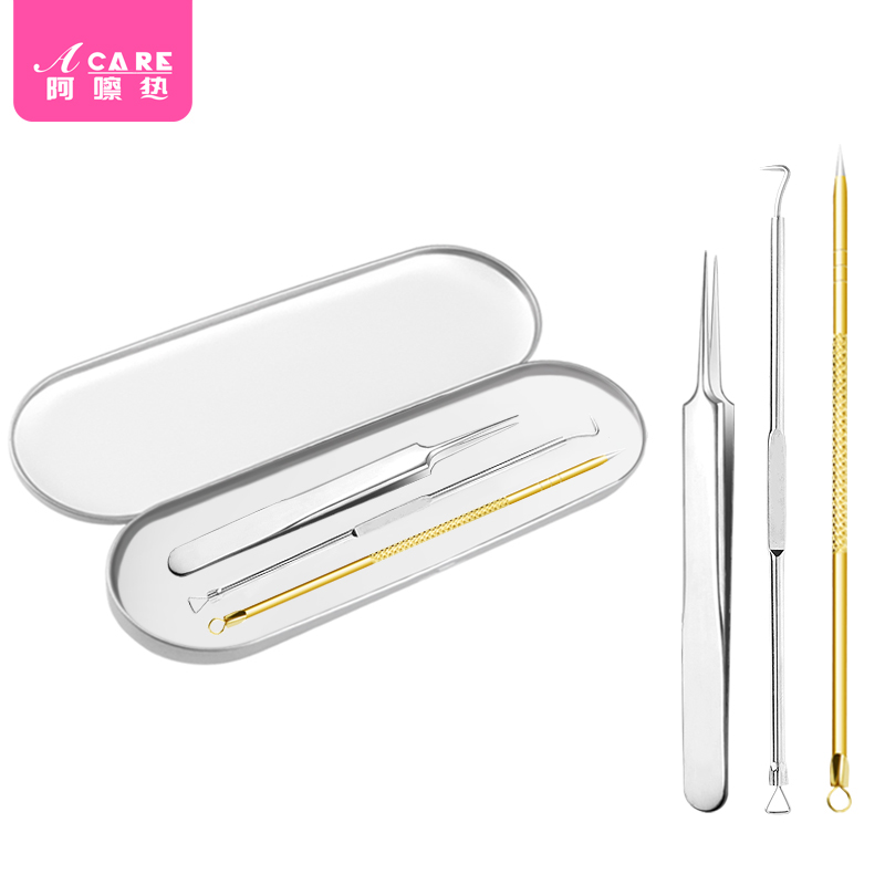 Cell clamp acne needle three-piece set with storage box acne squeeze acne blackhead tool tweezers set household