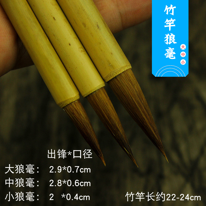 Wolf Mush brush Large middle and small wolf tail small wolf millismall block special bamboo pole One body painting fine art simple and practical small block in block letters