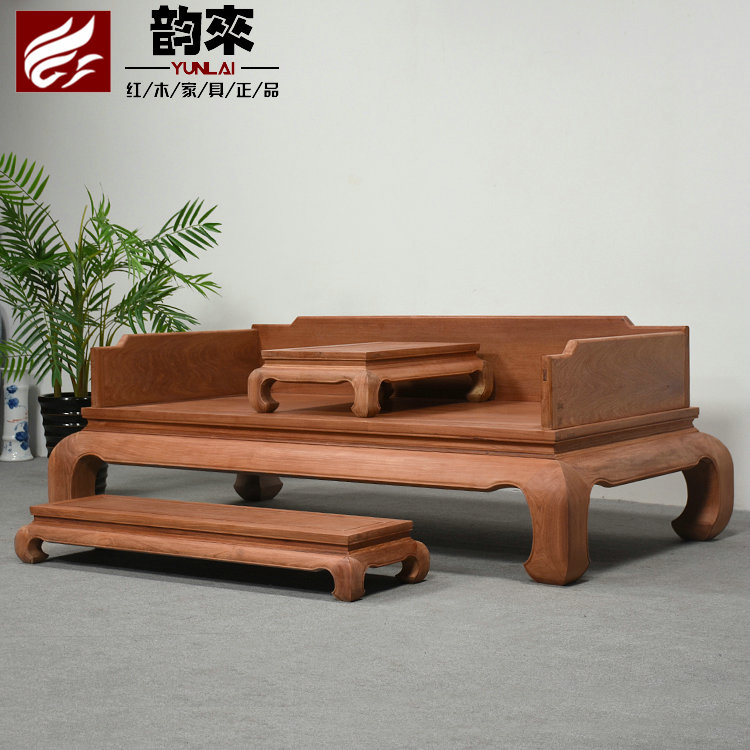 Myanmar flower pears wood Chinese style Throne Bed Combo Red Wood Sleeping Tatami MODERN BIG FRUIT PURPLE SANDALWOOD SOLID WOOD FURNITURE RECOMMENDED
