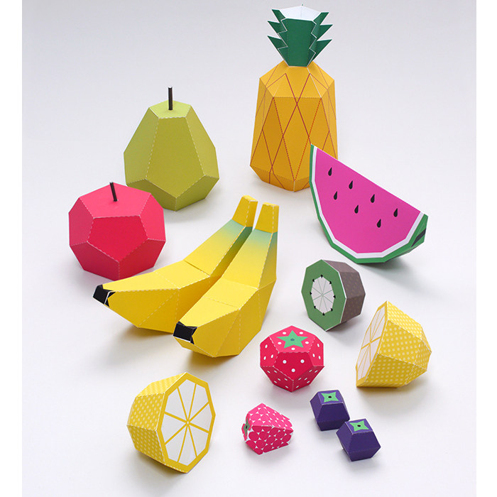Paper model making DIY handmade educational toys watermelon strawberry lemon pineapple simulation fruit 3D three-dimensional origami