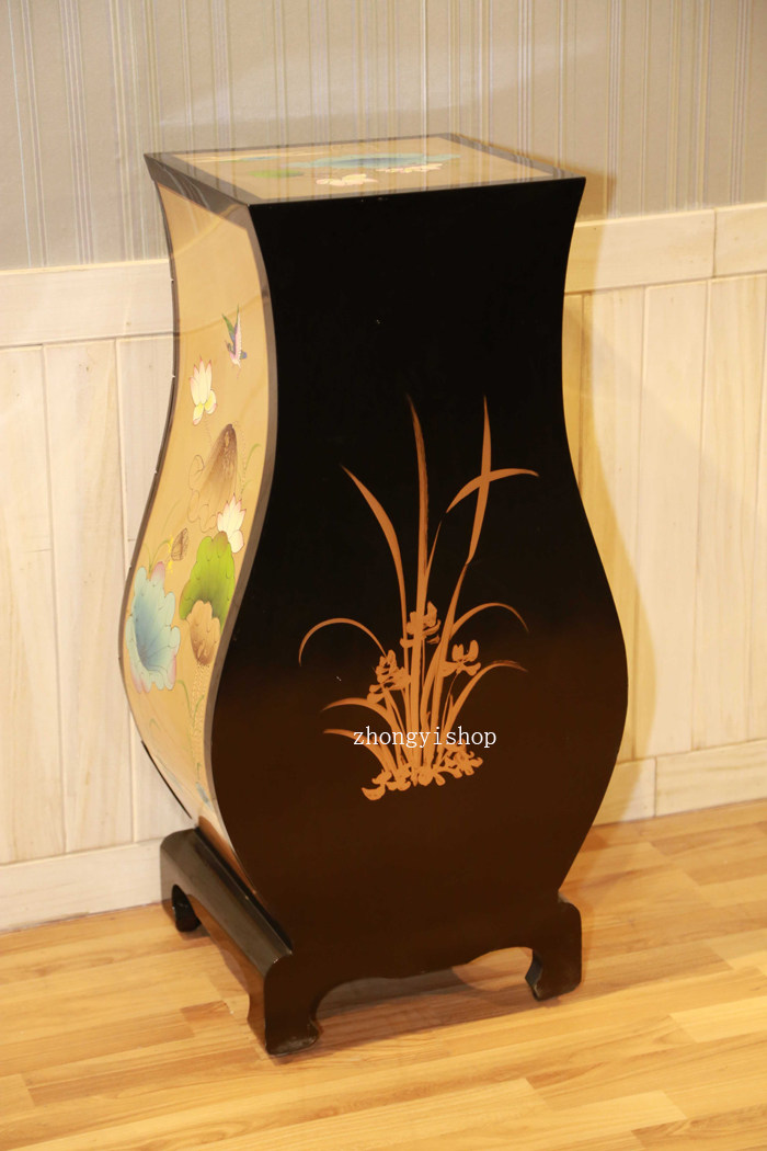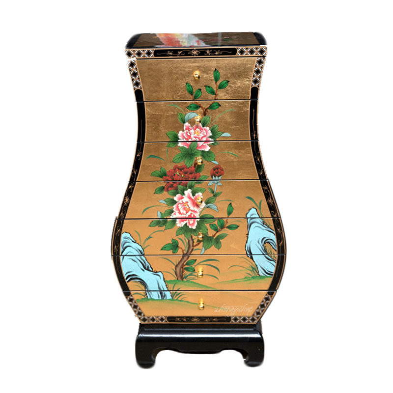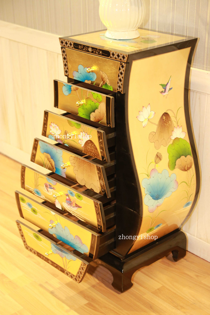 Hand-painted gold foil new Chinese classical furniture vase cabinet seven-drawer cabinet bedside cabinet porch cabinet lotus