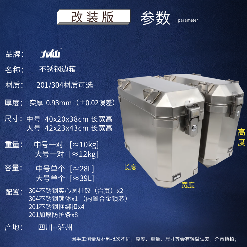 Daxian stainless steel locomotive side box 201304 trunk large anti-skid waterproof lock medium modification custom