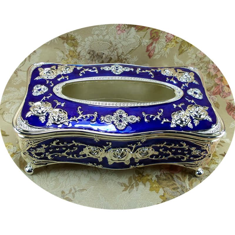 Z2 Special Russian tin metal tissue box rectangular silver blue rose with luxury drilling heavy