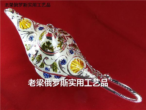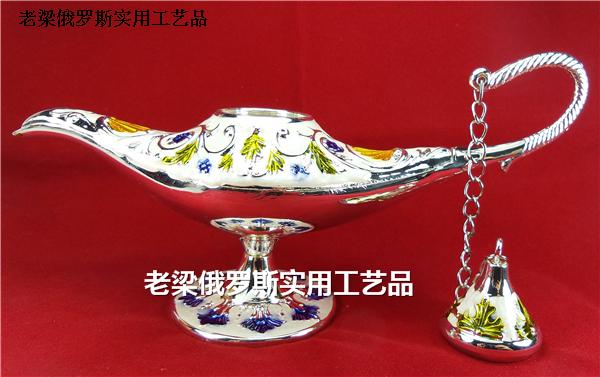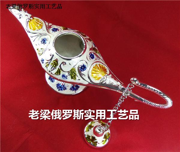 Z3 Russian alloy metal ornaments Aladdin magic lamp enamel glaze silver edge white blue gold flower wishing lamp large