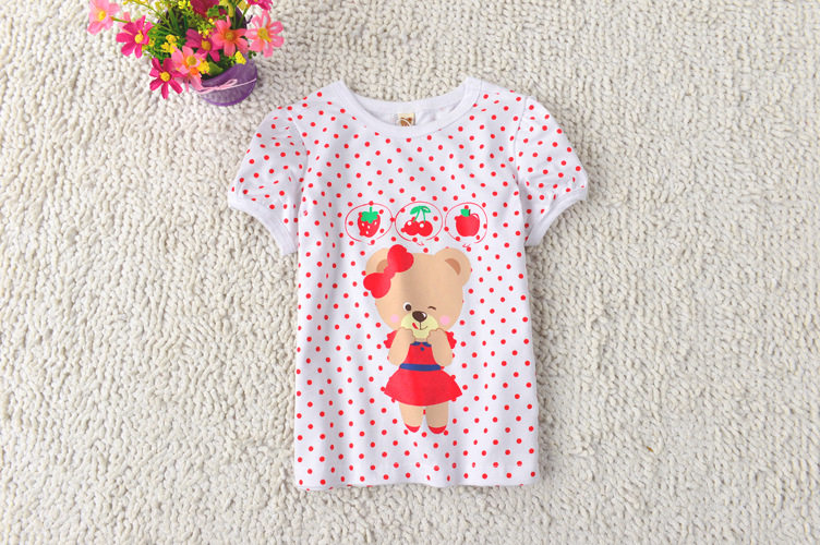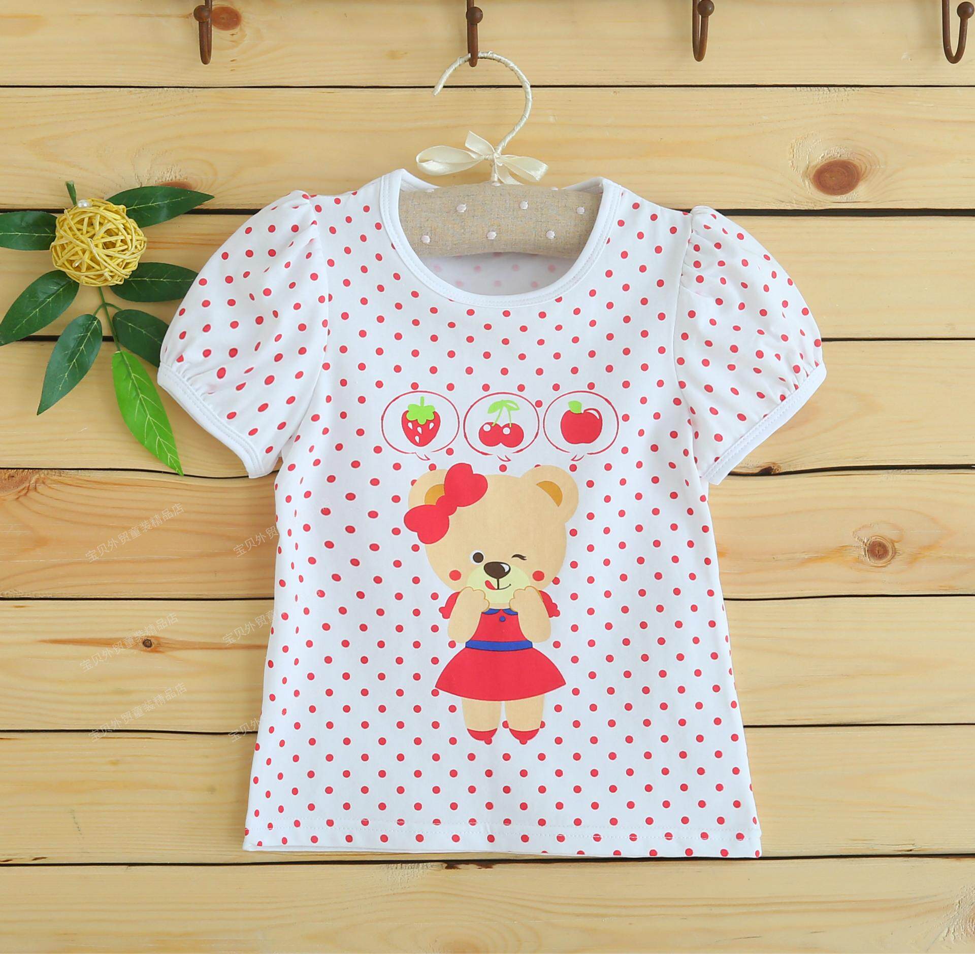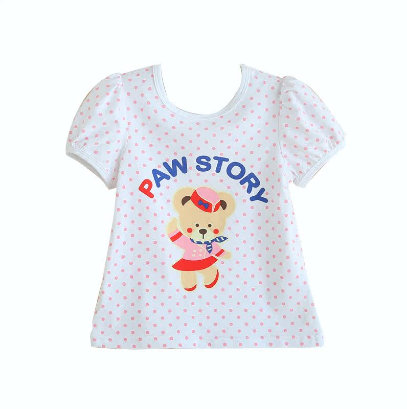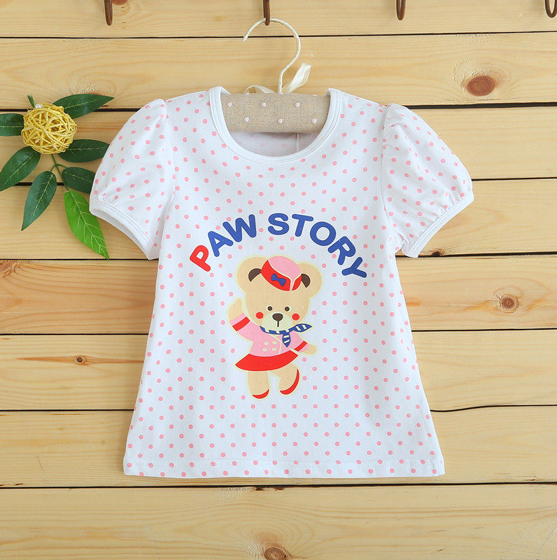 2021 Summer new Little Bear paw full cotton girl's round point thin short sleeves T-shirt blouses baby tot undershirt