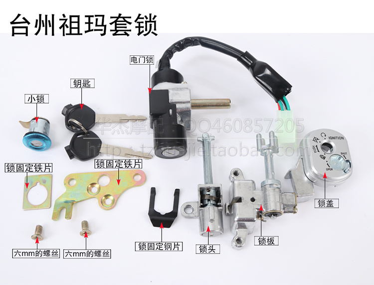 Zuma pedal electric car electronic door lock sleeve lock Fuel cap lock Zuma electric car 4 key lock accessories