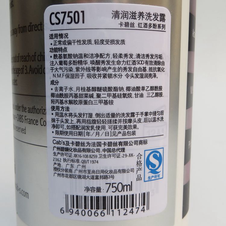 Red wine polyphenols French kabiss cabs cleans nourish shampoo 700 ML